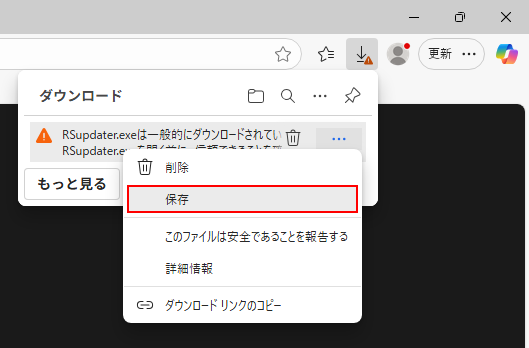 ダウンロードウィンドウの右側の「…」をクリックします。