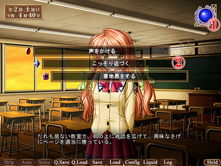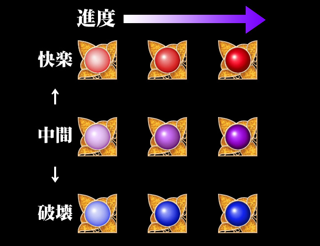 快楽ルートの調教を進めたければ赤いアイコンのついた選択肢を選び、破壊ルートの調教を進めたければ青いアイコンのついた選択肢を選びます。 |